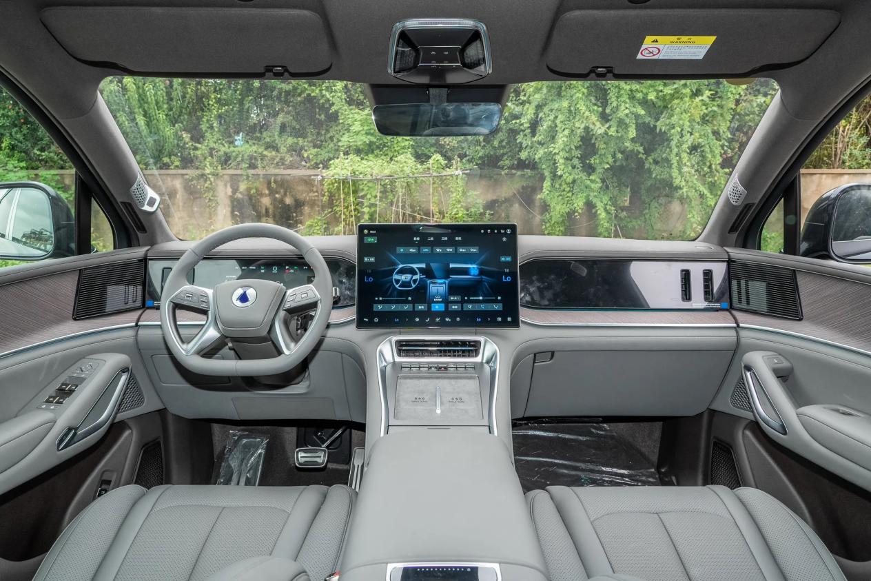 车内标配13.2英寸液晶仪表、50英寸AR-HUD抬头显示、17.3英寸悬浮式中控屏、13.2英寸副驾娱乐屏、17.3英寸后排吸顶屏、后排控制多媒体屏以及流媒体后视镜等,可实现10屏互联。搭载4nm旗舰芯片,配备全新智慧座舱,车机的UI界面美观高效,操作便利易上手,支持3:7分屏操作和多任务运行,新增时光桌面和毛玻璃视觉效果,交互更加直观流畅。