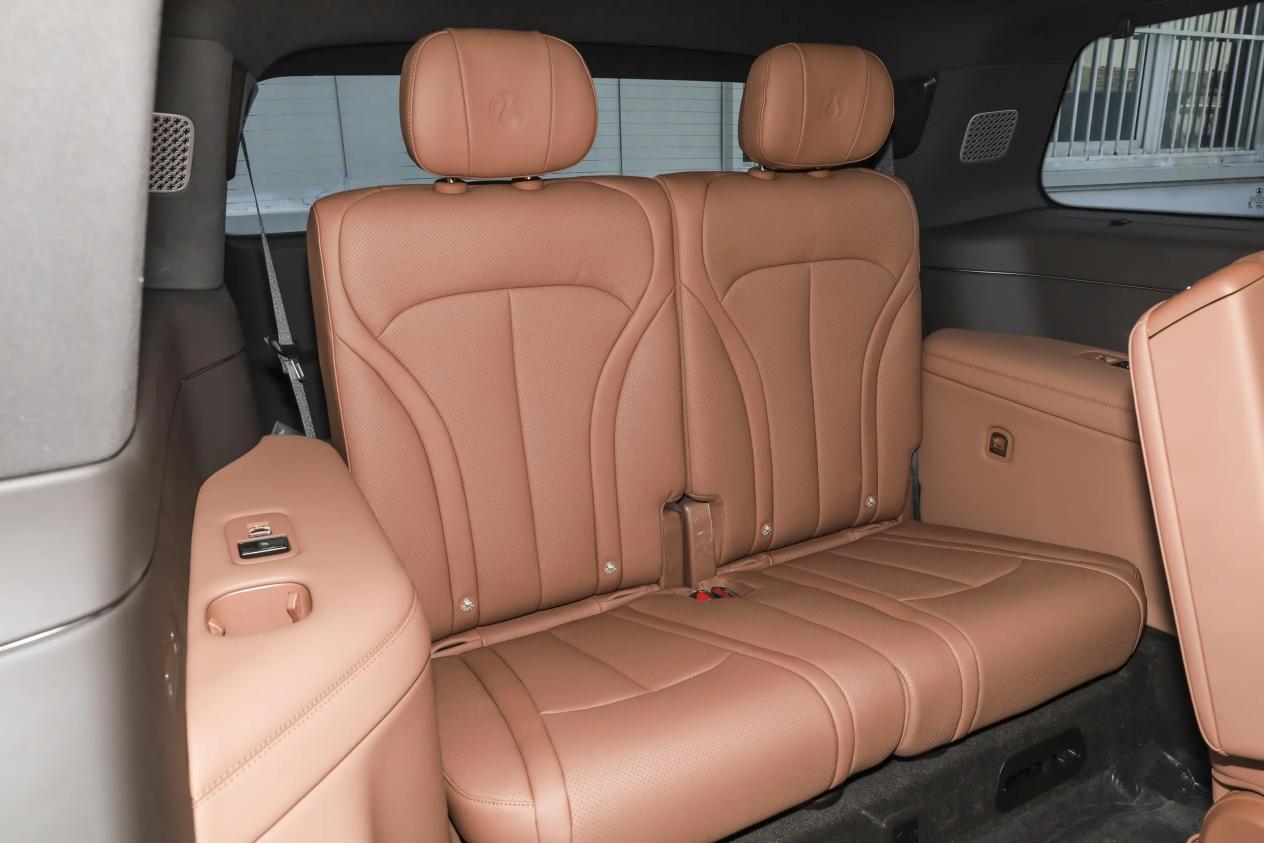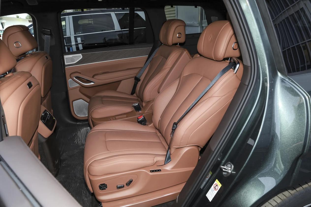 第三排座椅支持六向电动调节,含靠背、前后和坐垫抬升功能,发泡材质柔软,乘坐体验远超同级SUV。全系标配一键放倒/一键复位、折叠头枕和ISOFIX儿童安全座椅接口。独特的坐垫抬升功能可让第三排座椅前滑100毫米,拓展行李箱空间。