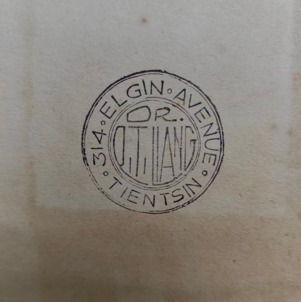 Ex Libris是藏书票的国际通用标记,Tientsin就是邮政式拼音中的天津,而Elgin Avenue当年在中文中被叫作“围墙道”,今称南京路。这是一张中国早期藏书票!于是我试着通过票面信息以及书上的痕迹,来确认这张藏书票的主人和年份,也看看能否考证出它由谁设计。
