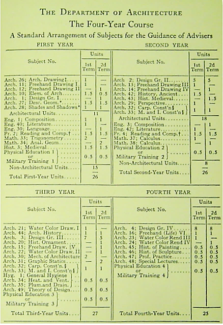 宾夕法尼亚大学1924-1925年建筑学专业的课程表