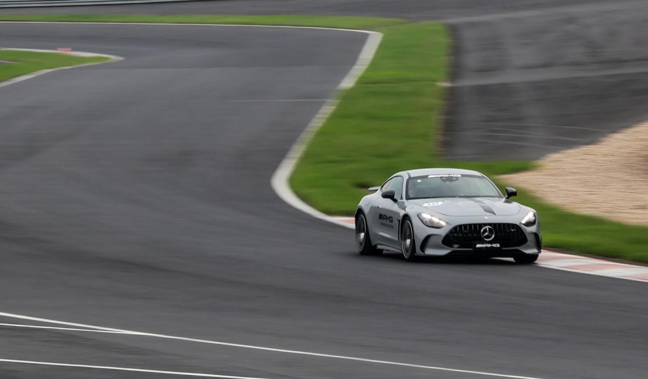 浙赛的晨雾还未散尽,如纱般裹着后山的泥泞土地,经过积水坑道的轮胎,在车辙痕迹里留下新鲜草屑,混着远处赛道上高压水枪冲洗胎泥的声响,一场关于AMG的“性能狂欢”被吹响了前奏。