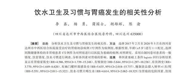 [1]李鑫.饮水卫生及习惯与胃癌发生的相关性分析[J].循证医学,2020.