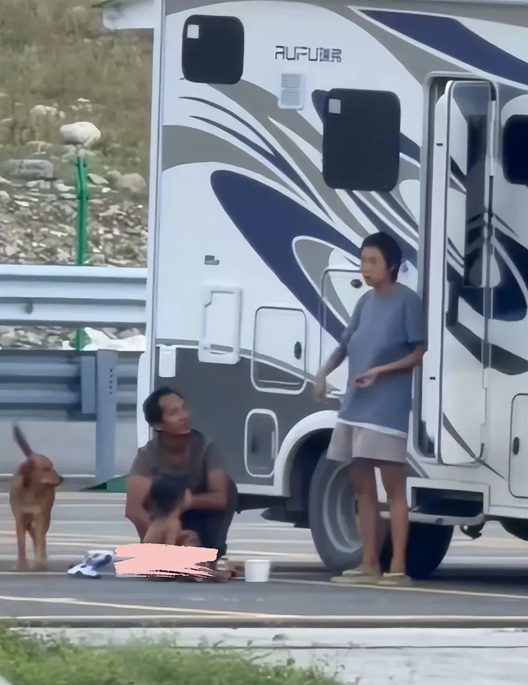 孩子父亲就带着孩子和一条狗,到村子的公路上晒太阳,他自己穿着一件珊瑚绒长款睡衣,裹得厚厚实实的,孩子却一丝不挂,丝毫不怕孩子被冻坏。