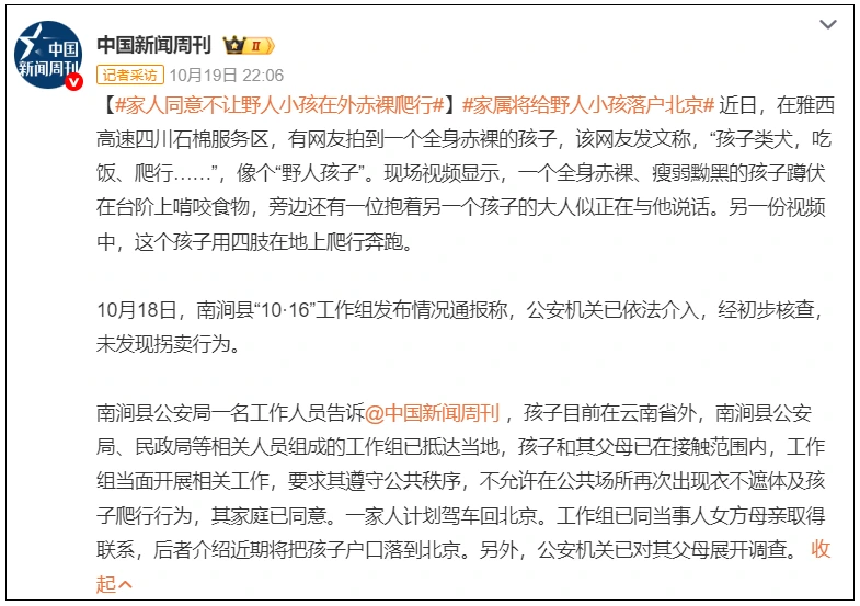 没想到引全网愤怒的“野人小孩”事件,这么快就有了后续。