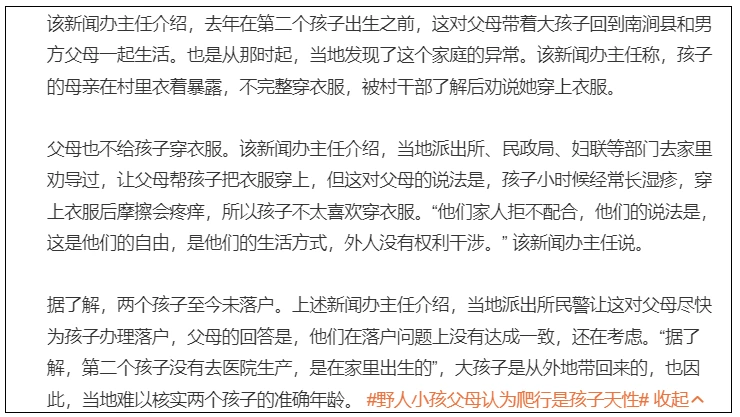“野人小孩”父母醒悟了?同意不再让孩子赤裸爬行,村民曝出更多信息