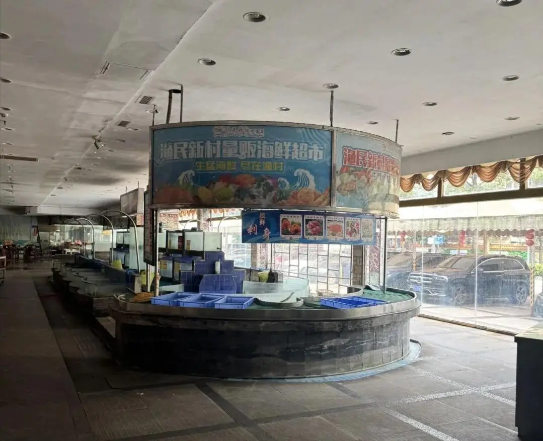 芳村那条熟悉的街道上,渔民新村的霓虹灯终于灭了。 卷帘门拉下,保安在门口贴出“暂停营业”的告示。 那块挂了二十年的“海鲜航母”牌匾,在昏暗灯光下显得格外落寞。 旁边的街坊叹口气,说一句“又一家顶不