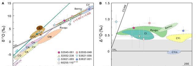 据介绍,CI型陨石的母体小行星主要分布在外太阳系,具有富水与有机质等挥发性成分特征。进一步统计表明,此类陨石在月球表面的比例远高于地球,说明碳质陨石对地月系统的撞击贡献可能被严重低估。