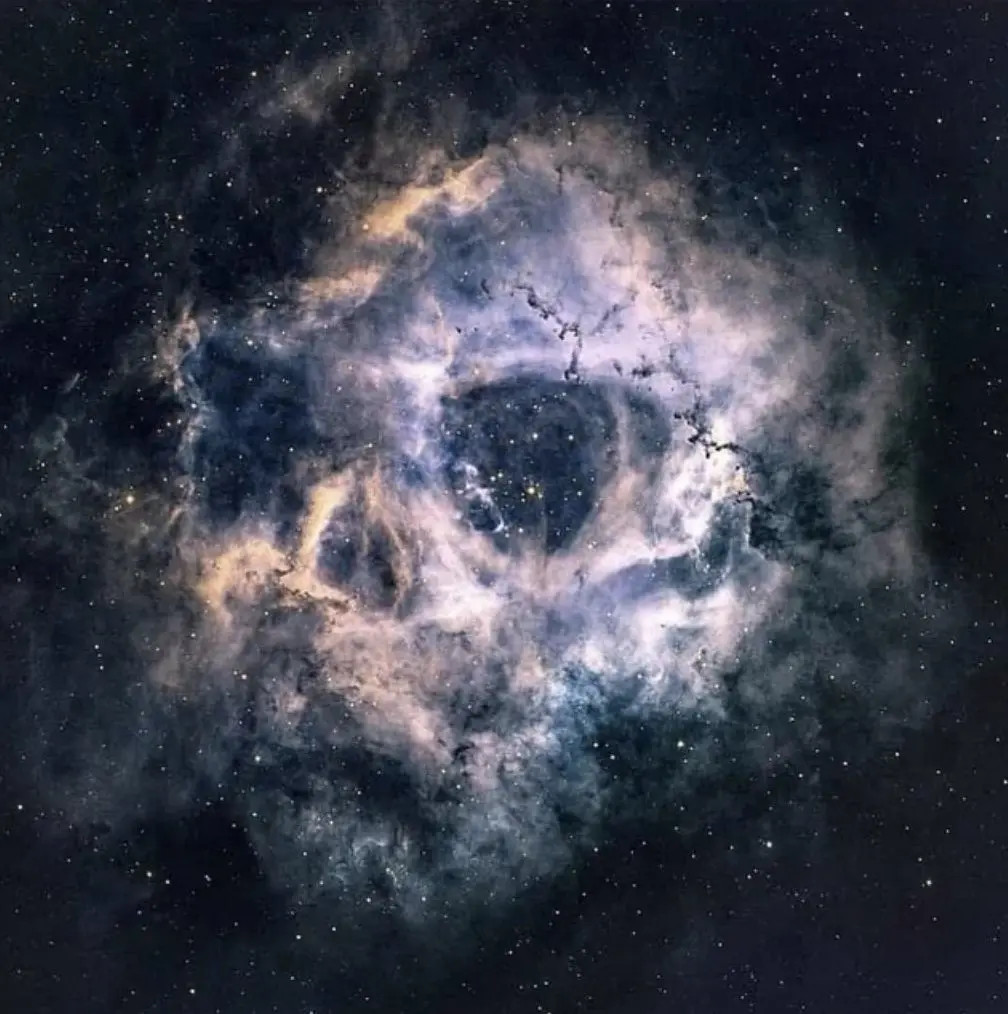 这是“玫瑰星云”的图像,部分人认为它的形态像人类的头骨,因此也被赋予了神秘色彩。