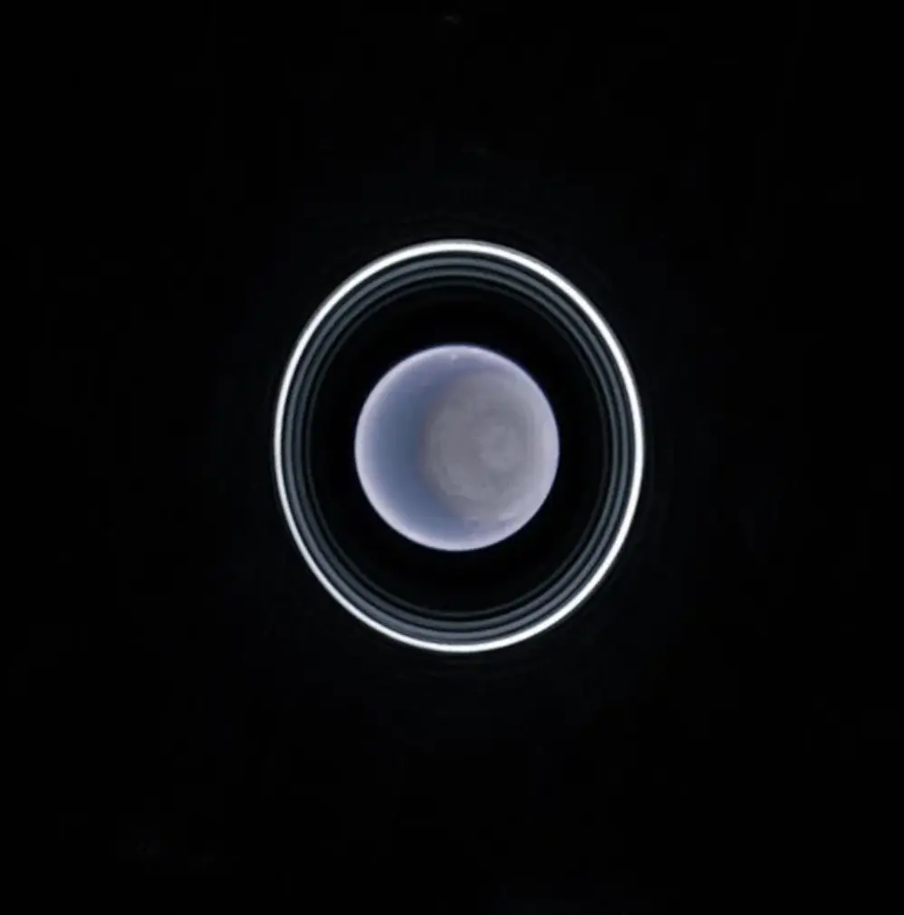 这是詹姆斯·韦伯空间望远镜拍摄的天王星图像,天王星是太阳系中唯一“躺着”自转的行星。