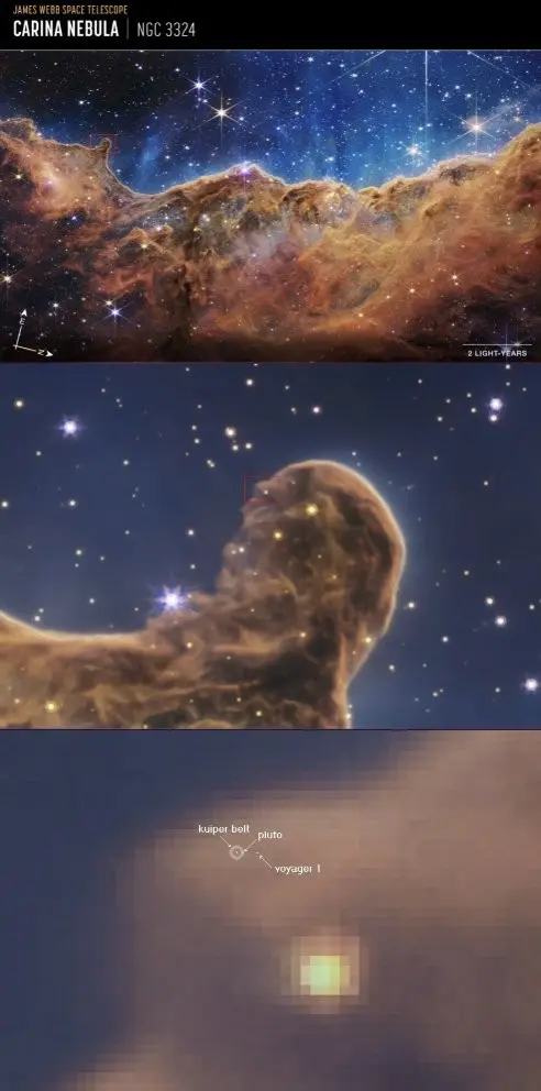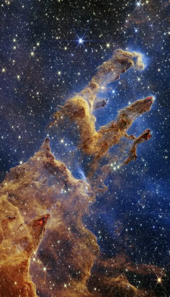 詹姆斯·韦伯空间望远镜(James Webb Space Telescope,简称JWST,用于观测宇宙深处天体)捕捉到了“创生之柱”的景象。