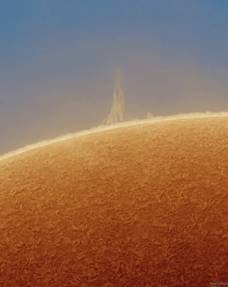 这张照片展示了太阳表面的一个等离子体“塔”,它的高度超过地球直径的4倍。