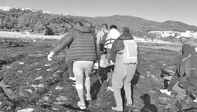 该男子仅身着泳裤,独自徘徊在退潮后裸露的礁石之间,动作迟缓,时而蹲入水中,时而又试图攀上礁石。“起初我们以为他是赶海的居民。”宋雷说,“但越观察越觉得不对劲——他的状态明显异常。”救援人员当机立断,迅速靠近并确认其身份,正是那名失联的泳客。