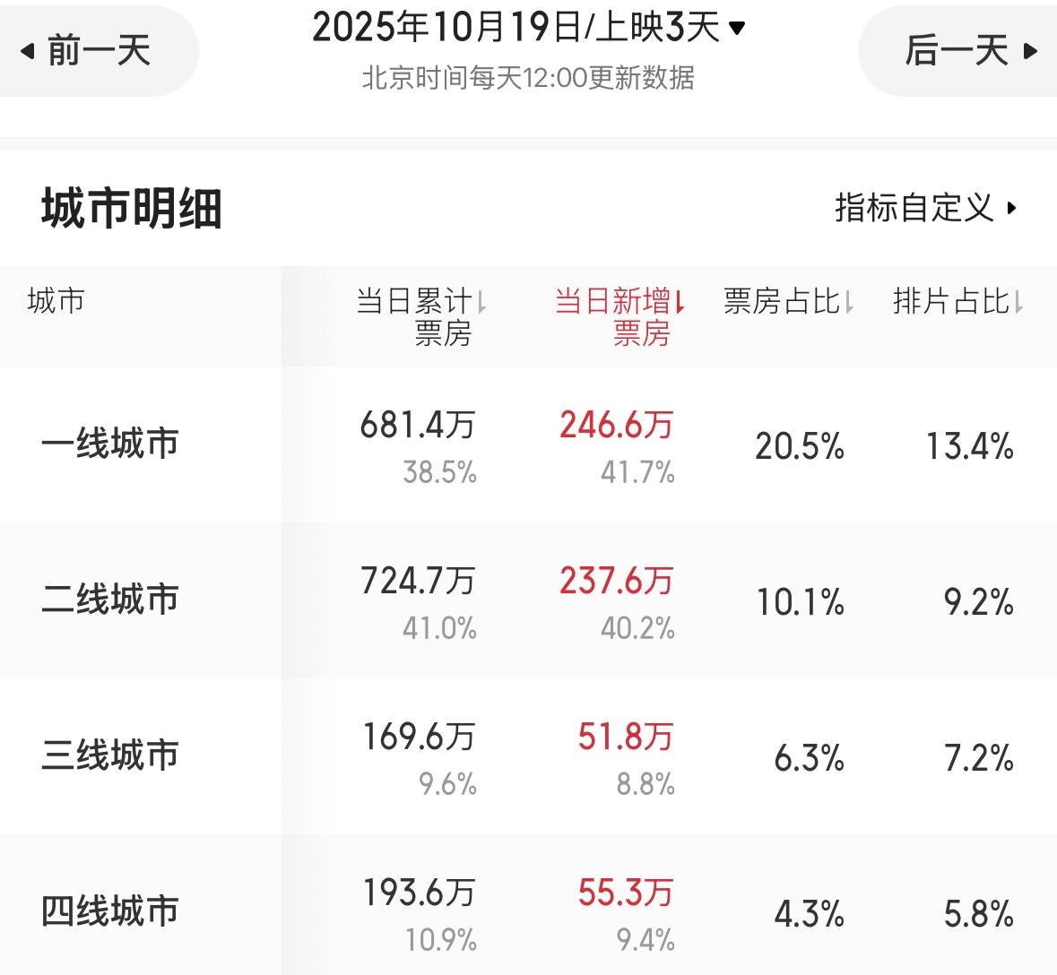 据猫眼专业版数据,《一战再战》的票房主要集中在一二线城市。在上映的首周末,其在一二线城市的票房占比在30%左右。这也侧面证明了《一战再战》的局限性。