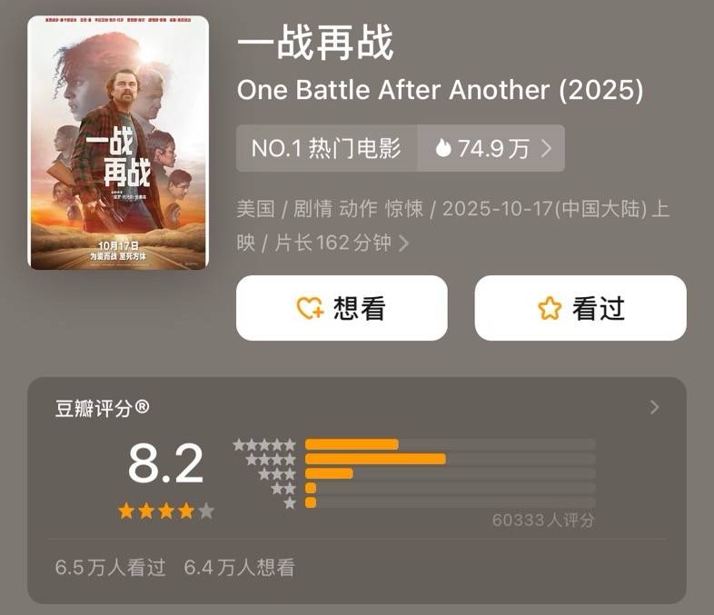 票房不是唯一标准。从映前就开始的口碑大爆,到被看好的颁奖季表现,《一战再战》所收获的坚实口碑,或许恰恰证明了它在艺术探索与思想表达上的成功。