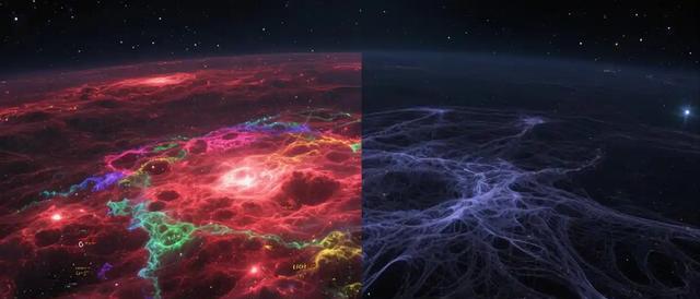 在宏观上,欧洲的“欧几里得”望远镜已经证实,暗物质并非均匀分布,而是在宇宙尺度上形成了巨大的丝状结构——也就是所谓的“宇宙网”——将星系团一个个连接起来,构成了宇宙的骨架。