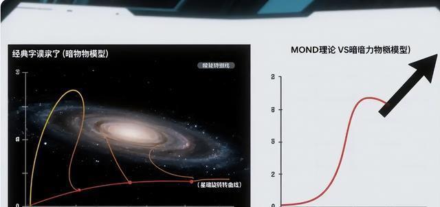 它的核心思想简单而大胆:在星系边缘那种加速度极低的环境下,引力的作用方式会发生改变,变得比牛顿定律预言的更强。这样一来,根本不需要额外的物质,就能解释星系的超快旋转问题。曾经被视为异端的MOND理论,如今正因为JWST带来的新数据而强势“复活”。