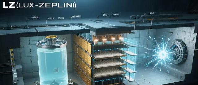为了抓住这个“幽灵”,物理学家们在地下深处建造了极其精密的“陷阱”。其中最引人瞩目的,就是LZ实验。这个探测器深埋地下,核心是一个巨大的、装满了液氙的容器,等待着某个WIMP粒子偶尔撞上氙原子核,发出一丝微弱的闪光。