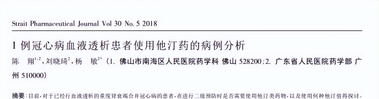 [1]陈翔,刘晓琦,杨敏.1例冠心病血液透析患者使用他汀药的病例分析[J].海峡药学,2018,30(05):271-273.