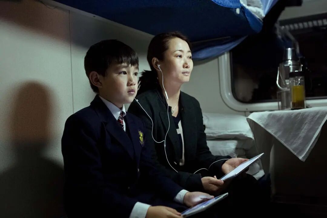 随着沈涛召回了在上海跟父亲生活的到乐,第二章进入第二部分,虽然仅有16分钟,却是全片最令我动容的情节,后置地填补了家庭生活的空白。这对长期分离的母子自然充满了种种间隙,乡土与城市、北方与南方、国内与国外、慢车与高铁……短暂相聚注定无法弥合这些间隙,但影片呈现出了一种极具中国特色的血浓于水:亲子互动往往以约束与冲突开始,亲情之爱体现于沉默或是顾左右而言他之中,“每个人只能陪你走一段路,迟早是要分开的”已是分别在即母亲所能表达的极限。