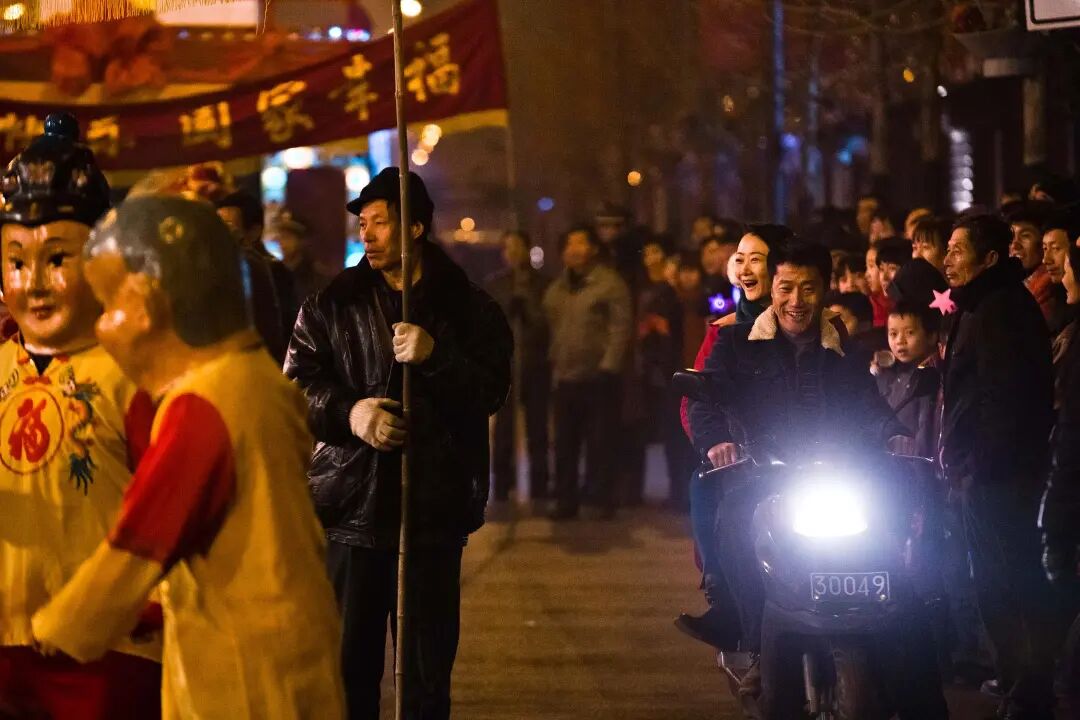 回过头看众人的舞蹈,贾樟柯并不追求整齐划一,而是突出了情境内众人的业余属性。专业出身的赵涛跳得比较协调,一旁的张译则多少有些“没有技巧全是感情”的意思,但在参差舞技与亲昵站位之间反而潜藏着二人的火花。相比之下,起先缺席之后凭空出现在队伍中后部的梁子可谓可有可无。