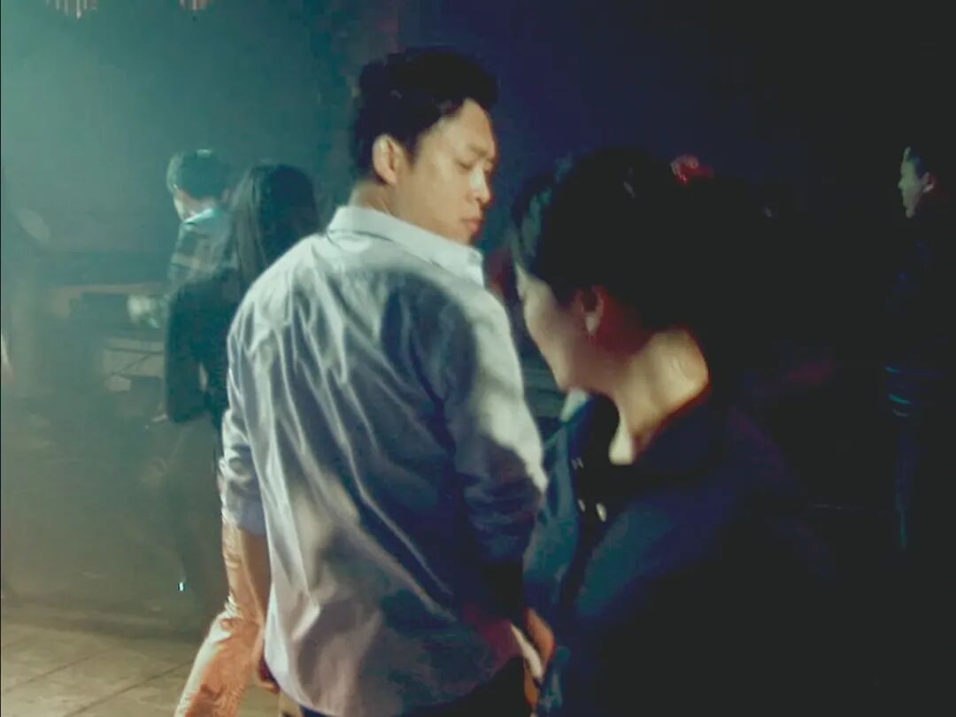 第三处是在迪厅里,沈涛独自狂舞,晋生走过来,沈涛仅匆匆一瞥,接着又低下头并背过身去。就在这时,晋生顺势加入了舞蹈。二人全程不语,但配合默契十足。镜头切到舞池外的梁子——不知是刚到还是始终不敢靠近沈涛,再摇回来时沈涛正与晋生相拥。三人矛盾爆发,最终梁子主动告别。