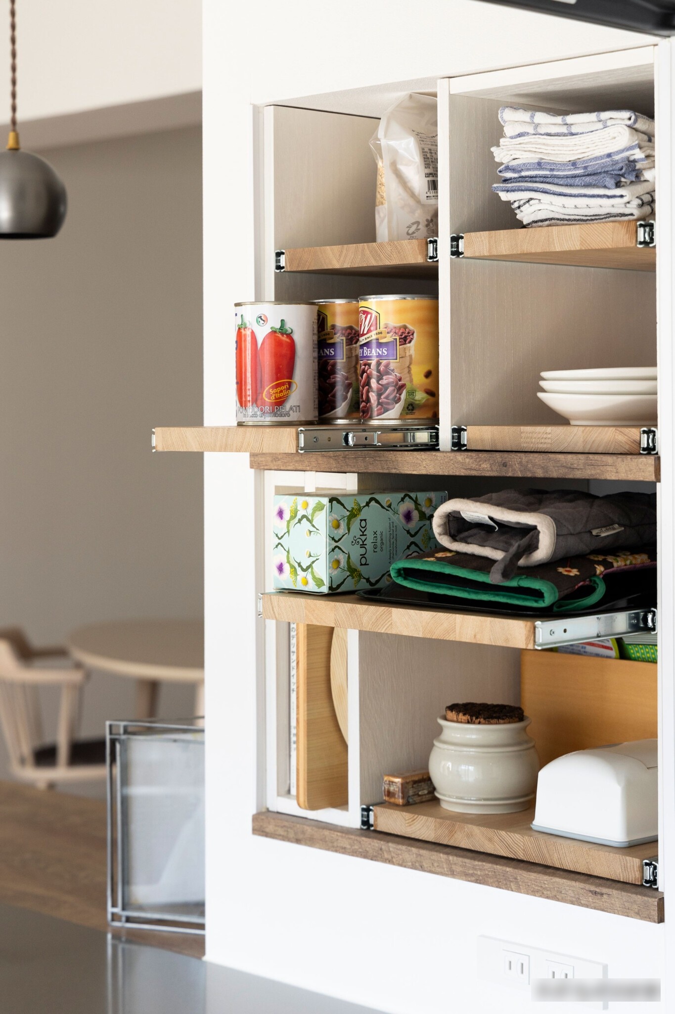 由于当地的灰尘较少,他们热衷于敞开式收纳,沿墙设木制层板,碗碟、水杯杯和厨房用具,有斜倚、有平叠、有倒悬,摆放的像艺术品般整齐。