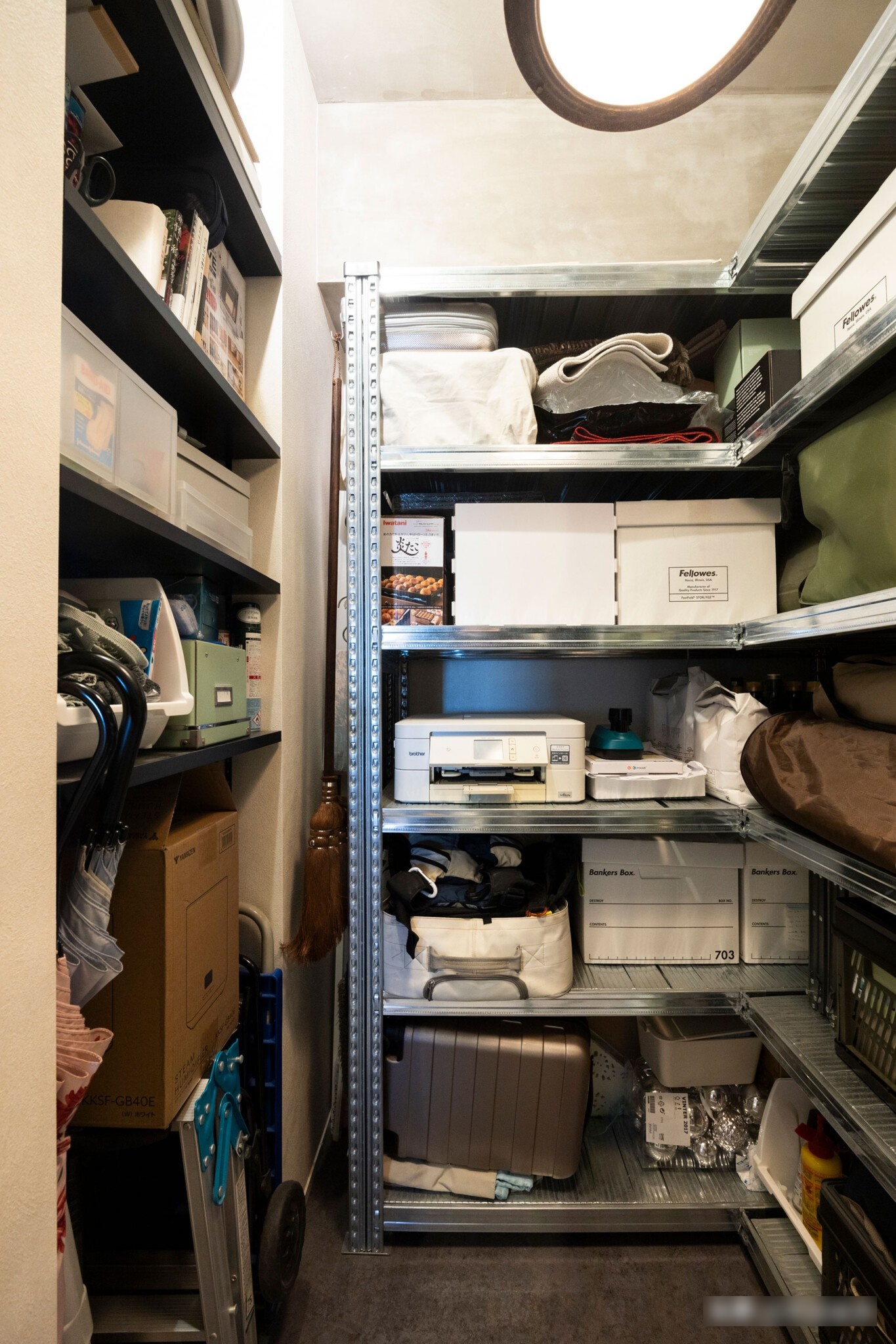 储物间除了收纳鞋和衣物外,还有雨具、行李箱、购物车、运动器材等,整整齐齐,让每一次出门或回家都充满仪式感。