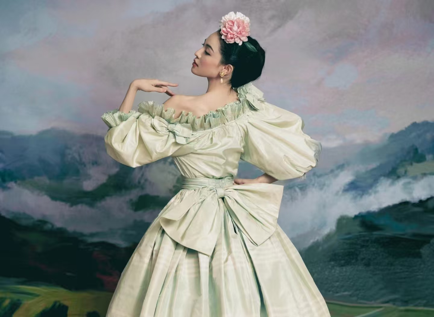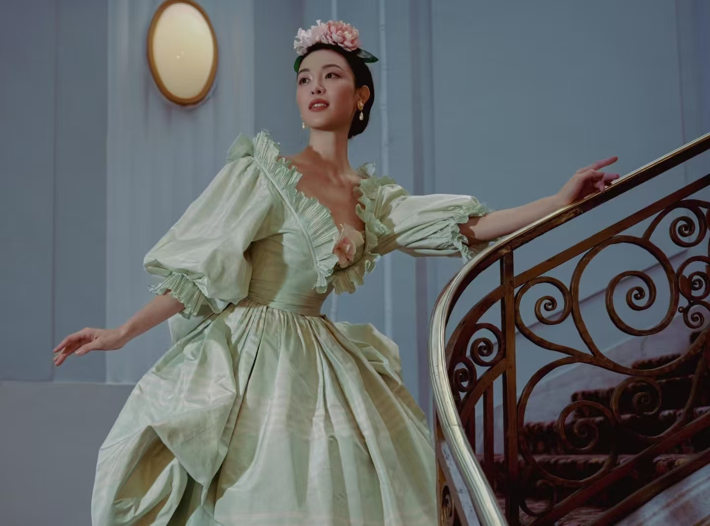 谁能不爱复古美?钟楚曦穿 1987 年古董高定走红毯,撒花瓣瞬间美成 “古典油画”