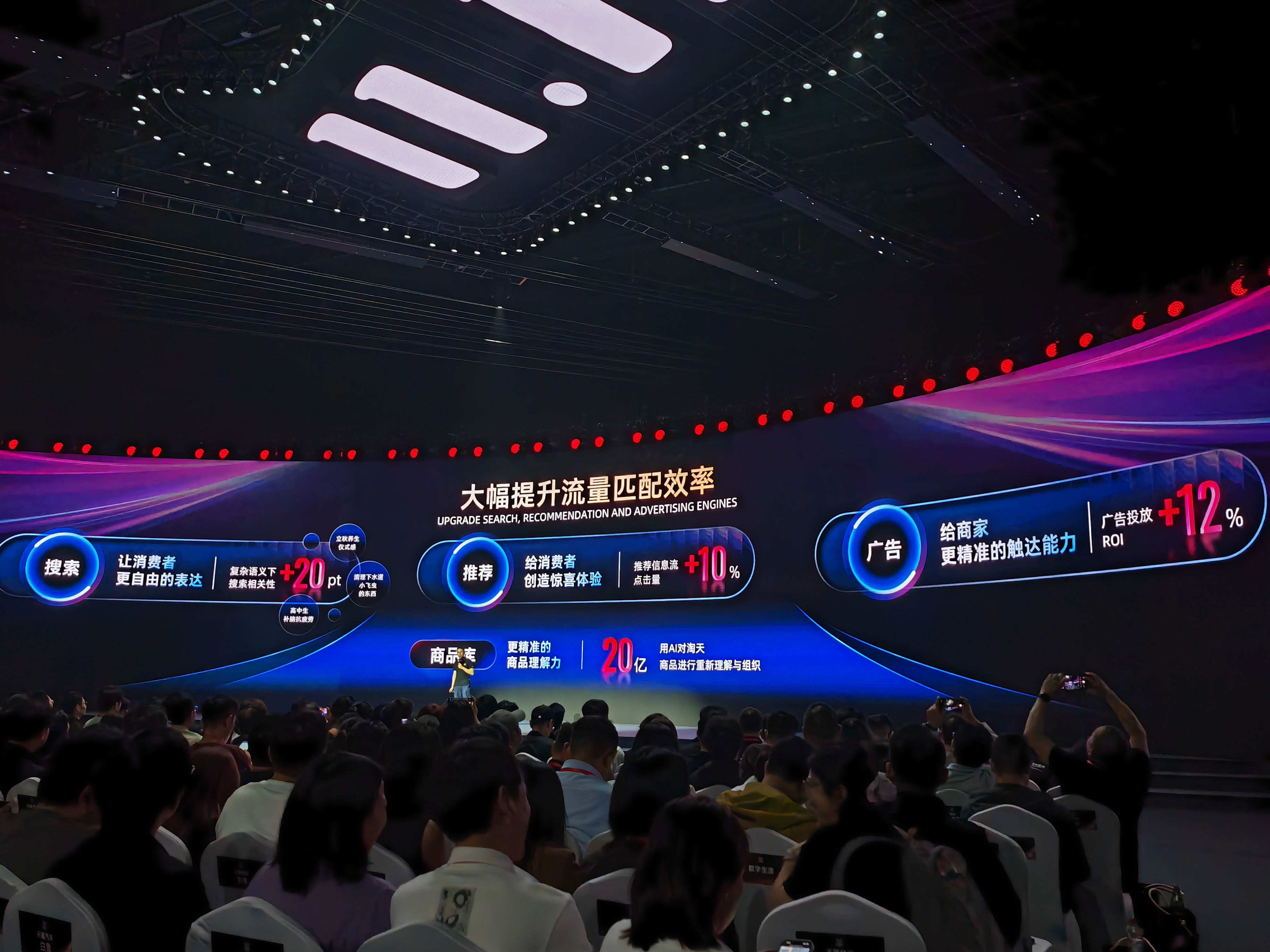 10 月 16 日,天猫在上海举办了「双十一」启动发布会,阿里搜推智能产品事业部总裁凯夫以《AI 重构电商》为主题的分享,极为清晰地阐释了阿里做「AI 电商」的完整思路。而且,效果不错,比如,引入大模型后,商品推荐的精准度大幅提升,带动购买效率提升 25%;在广告环节,商家 ROI 提升了 12% 等等。