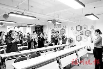 随后,付慧中现场示范经络养生技巧,教大家练习虎爪提膝、摩肾堂等冬季导引动作。同时,分享了乾隆养生法中的“十常四勿”小技巧。