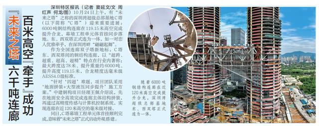 【深圳特区报】“未来之塔”六千吨连廊百米高空“牵手”成功