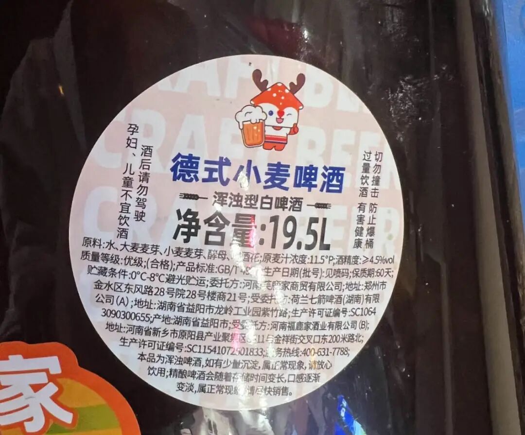如今在全国开到1400家门店的福鹿家不再在公开场合提及精酿,毕竟官网上所写的“万吨级自建工厂”也很难和精酿的小规模生产划等号。于是蜜雪冰城转头抓住【鲜啤】大做文章,店内的宣传语换成了“酒厂直送,低温 0-8℃锁鲜”“不过滤不杀菌,才是国标真鲜啤” ,当你点完单,店员也会提醒你要在半小时内喝完。对比超市货架上的鲜啤保质期大约在28天。