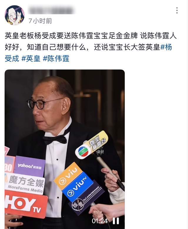 早前升级当爸的陈伟霆虽然没有现身,但却获得了老板杨受成的重要礼物,这与之前古巨基喜获儿子时的奖励几乎一模一样。