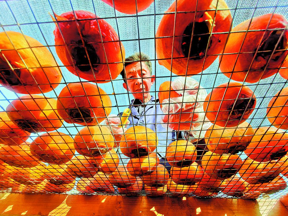 10月22日,牡丹区何楼街道果农正在晾晒柿饼。据悉,我市柿树种植历史悠久,柿饼制作技艺世代传承,出产的柿饼以“皮薄肉厚、霜白如雪、核少味醇”闻名,深受各地消费者喜爱。这一抹秋日甜蜜,不仅承载着乡土记忆,更映照出我市特色农产品发展的蓬勃生机。