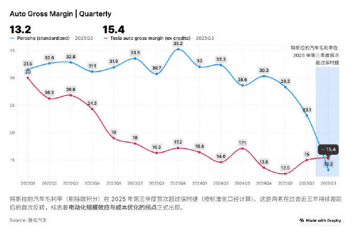 单车毛利率大跌!三季度特斯拉毛利率首次超过保时捷