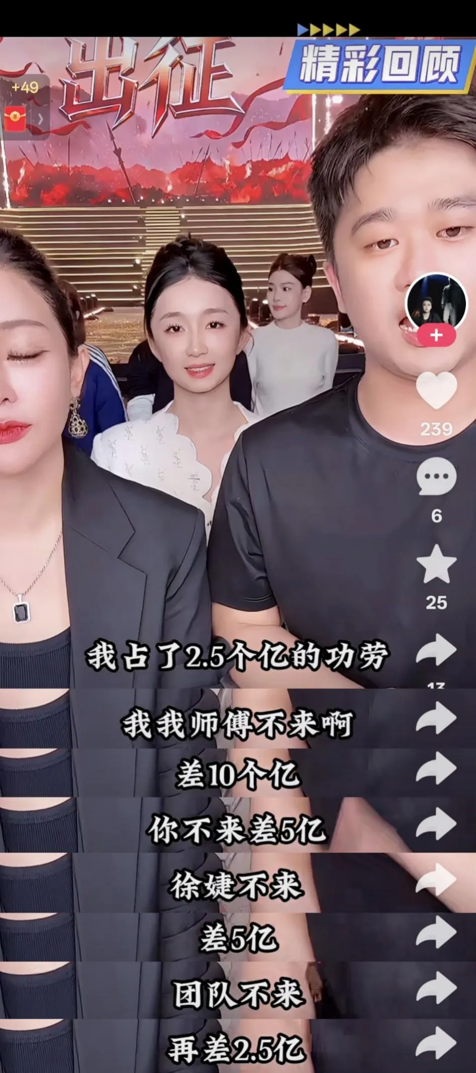 公开数据显示,这场直播的销售额约为25亿元。其中,赵梦澈还特别提到,25亿元的销售额离不开辛巴的功劳,“我师父(辛巴)不来,咱这场直播也完了……我师父不来,差10个亿,你(初瑞雪)不来,差5个亿,徐婕不来,差5个亿,我剩5个亿,团队不来,再差2.5个亿。”