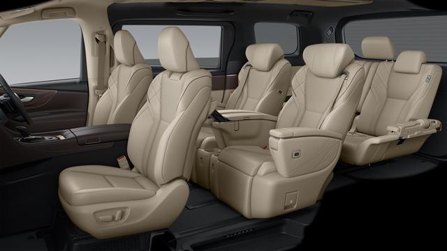 新车在内饰方面,现代感得到明显的提升,棕色内饰也带来不错的商务气息,方向盘采用双拼材质,中控换装了悬浮式大屏幕,中控台两侧还提供三角窗,第二排还提供迎宾小踏板,航空座椅也是必不可少,整体设计,相比现款车型,质感也有着一定的提升。