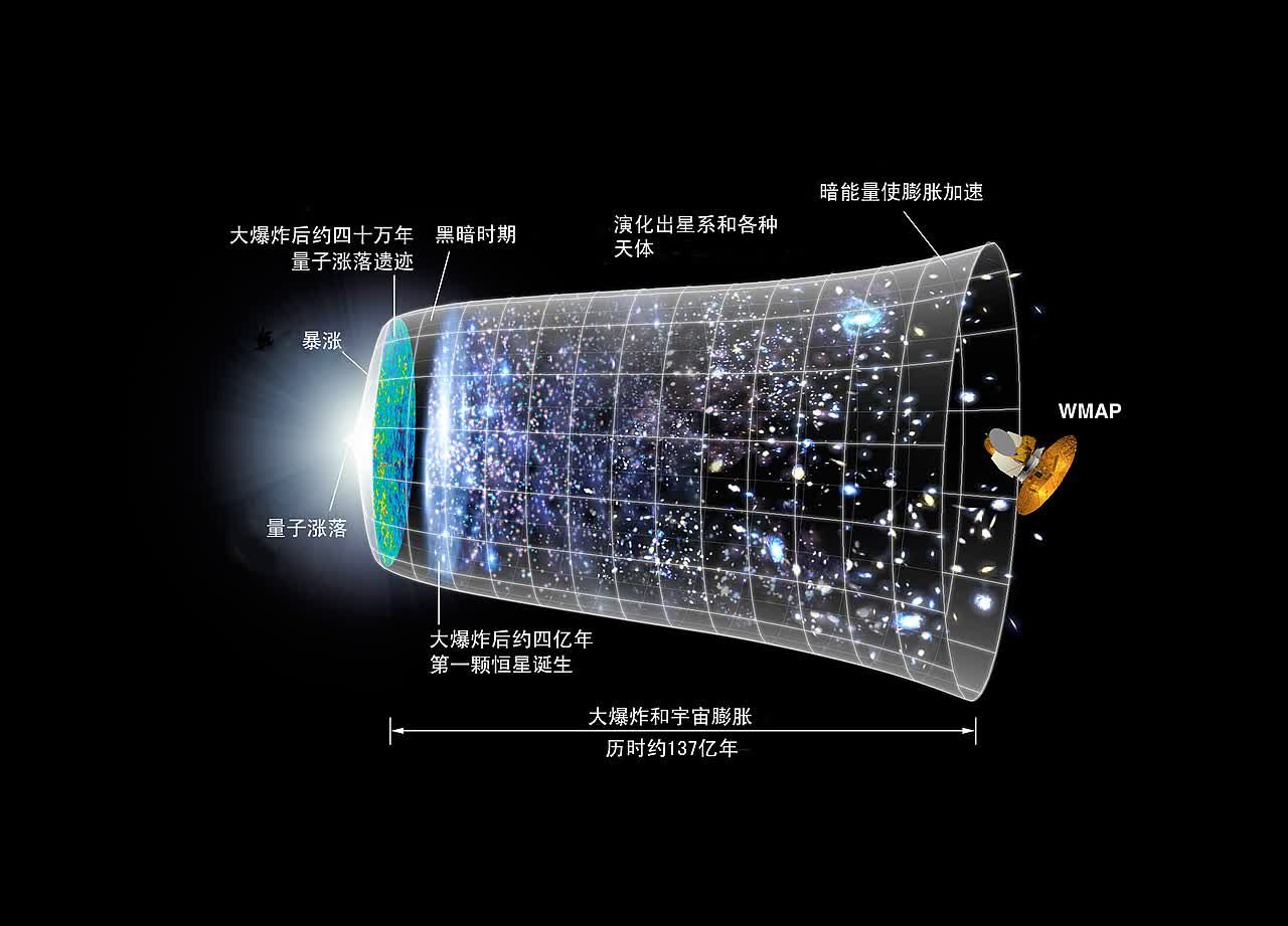 根据现有的模型,宇宙的起源是由一次大爆炸引发的。大爆炸之后,宇宙经历了一个快速而惊人的膨胀时期,称为暴涨。 当前能解释宇宙发展的模型为大爆炸理论。大爆炸模型指出,宇宙最早处于温度与密度极高的状态