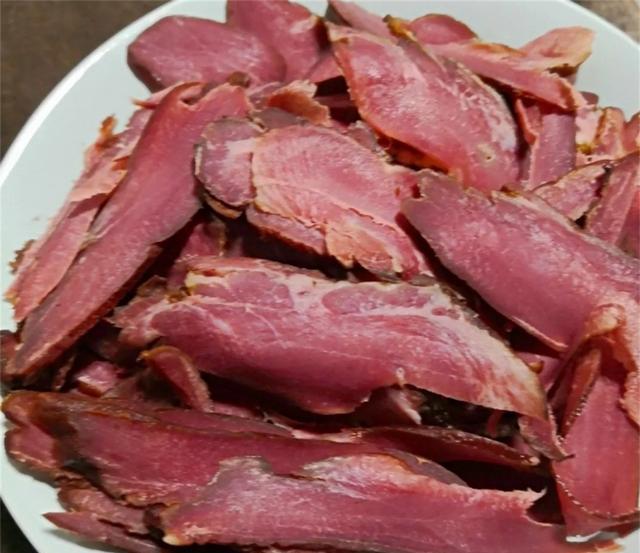在烟熏过程中,猪舌头被置于特制的烟熏炉中,经过长时间的烟熏烘烤,表面逐渐染上一层厚重深沉的颜色,那是一种晶莹通透的红,仿佛是大自然赋予的瑰宝。这种颜色不仅令人赏心悦目,更蕴含着烟熏特有的香气和味道。当烟熏腊猪舌头切片上桌时,那诱人的色泽和香气瞬间便能勾起人们的食欲。