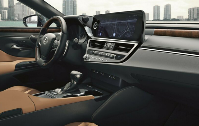 雷克萨斯ES限量版内饰由黑色和棕色组成,一些细节还增加了木纹处理,方向盘也采用双拼材质,空调操作区采用大量实体按键,还是比较实用的,中控屏幕的尺寸为12.3英寸,限量版车型还提供马克莱文森音响,Lexus Safety System+2.5安全驾驶辅助系统。