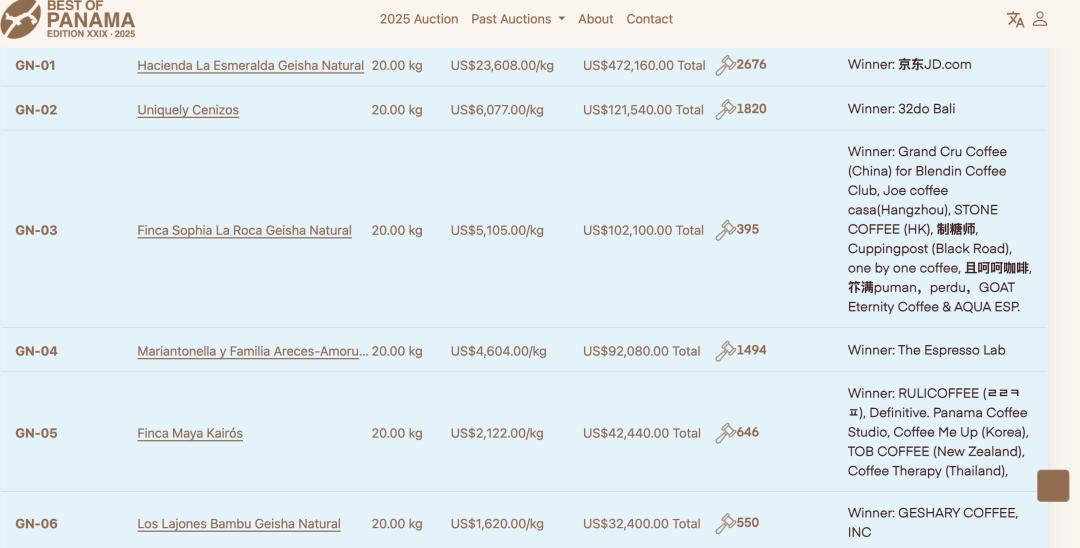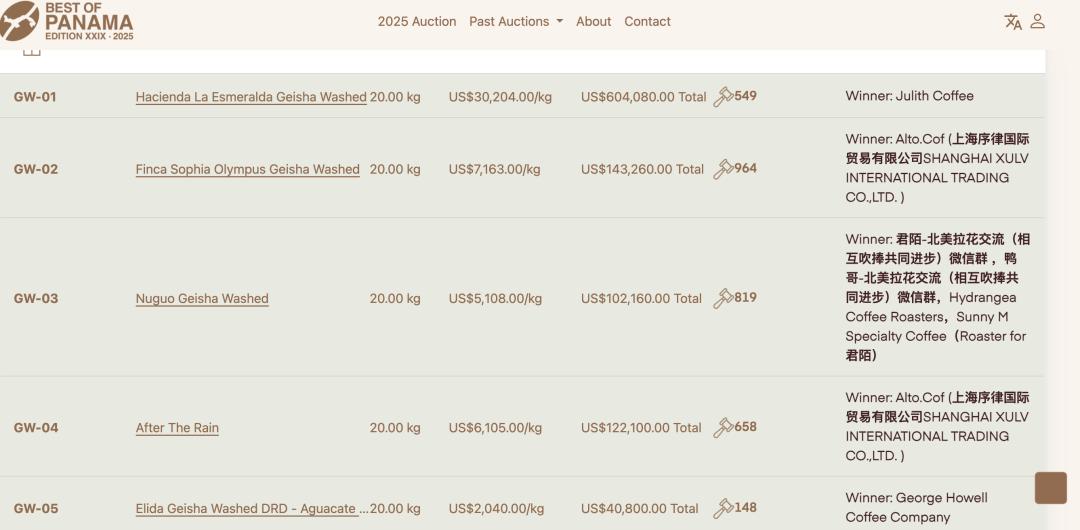 关于为什么这款豆子会这么贵,其实巴拿马翡翠庄园的战绩已经不用多做介绍了,例如早在2004年巴拿马瑰夏以21美元/磅成交,和现在比这简直就相形见绌了。在2025年的BoP拍卖会上,巴拿马翡翠庄园以30204美元/公斤的价格成交了水洗瑰夏,超过了2024年私人拍卖创下的13518美元/公斤世界纪录。该农场的日晒瑰夏也赚了23608美元/公斤,两次打破纪录,反映了这些独家地块的超高价格。