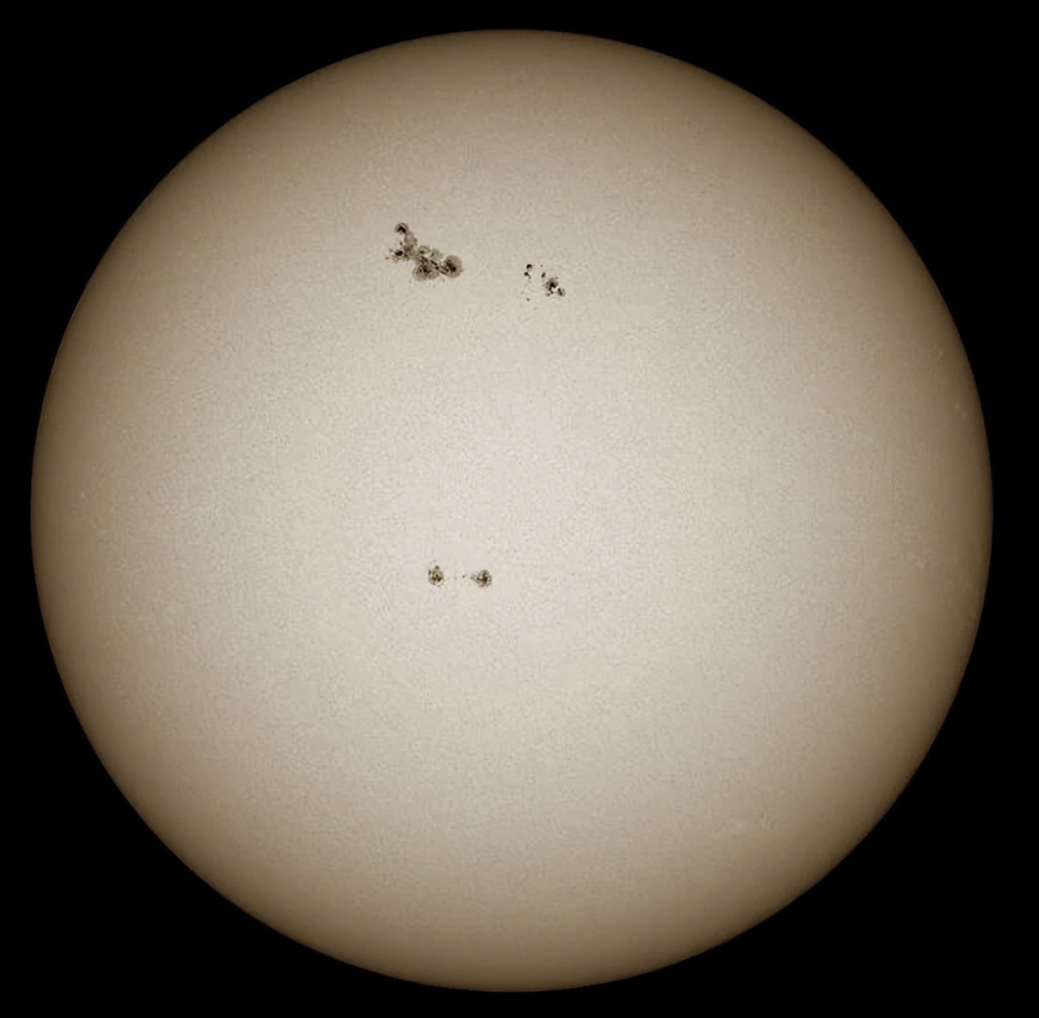 白光太阳图像,可以观察到太阳黑子等较为常见的现象,也可用于观测日食,但其他细节就很少。