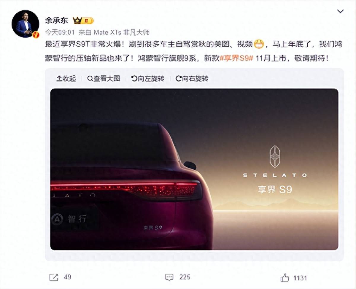 余承东揭秘新款享界S9:豪华科技双加持,11月上市剑指BBA“56E”