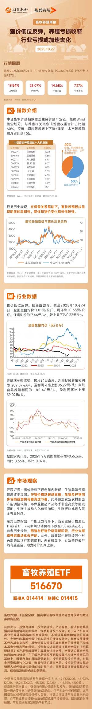 二级市场上,资金持续借道养殖主题ETF逆向布局“猪周期”。10月27日,畜牧养殖ETF(516670)获资金净流入2.3亿元,位居同类第一;连续14日获资金净流入4.7亿元,最新规模13.5亿元刷新上市新高。