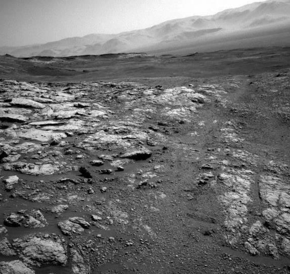 不光如此,“好奇号”还用左导航相机和右导航相机拍了更多照片。这些照片里,远处的山脉高低起伏,近处的地面凹凸不平,灰白的石头嵌在深色的火星土里,斜坡上满是碎石堆。看着这些照片,就像在看一部火星探险的纪录片,画面虽然简单,但总能勾起人的好奇心:这地方到底藏了啥秘密?