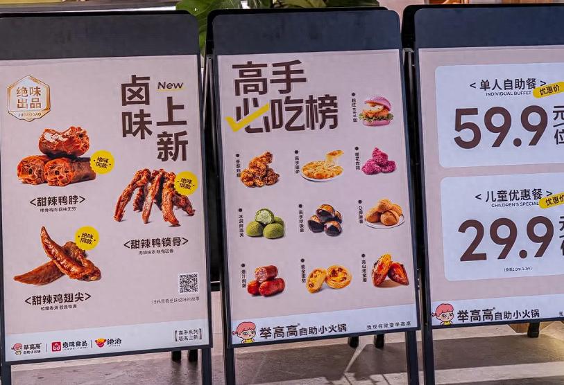 举高高能火,不是只靠低价。供应链上,它拉来正大、绝味背书,食材成本降了,消费者也认品牌;产品端玩出了新花样,明档现做的披萨、能自己搭配的DIY甜汤,再加上每季换的限定款,比传统小火锅多了新鲜感;服务上没掉海底捞的底子,基础的便民服务都给足,空间用木质调性搭S形餐台,坐着比传统火锅店舒服。