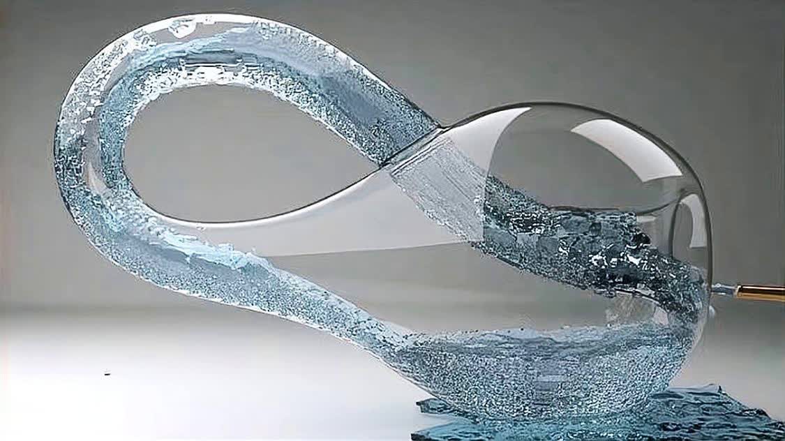 这种特性,使得克莱因瓶在理论上永远无法被装满——即便将地球上的所有水倒入其中,水也会“从另一端流出”,因为它的结构在高维空间中是自洽连通的。虽然现在网上有很多仿真的克莱因瓶,但是真正的克莱因瓶无法在三维空间中被制造出来,其根本原因在于维度的局限性,在四维空间中,克莱因瓶的瓶颈可以通过第四维绕过自身,和瓶底无缝连接,而不和瓶身相交,但是在三维空间中,这种绕行是没有办法实现的,任何试图在三维中构造克莱因瓶的尝试,都必然导致瓶颈和瓶身发生自相交,这在数学上被称为是侵入,而非嵌入,换言之,我们所见的所谓的克莱因瓶模型,其实只是它在三维空间中的投影或近似表达,本质上已经违背了其原始的定义。