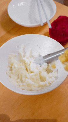 大人、大孩子吃,只要加点果酱到里面,有点像是蓝莓山药,也是很受欢迎的小点心。