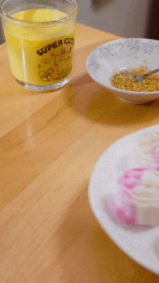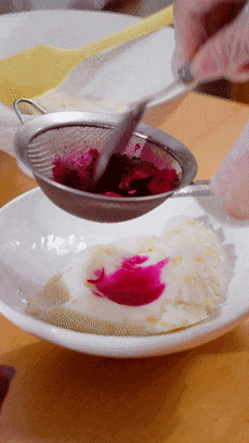 这块你们不调色也行,但要是孩子比较挑的,看颜值的,你们可以加点火龙果汁,调出一个粉红色,搭配起来就很好看了。