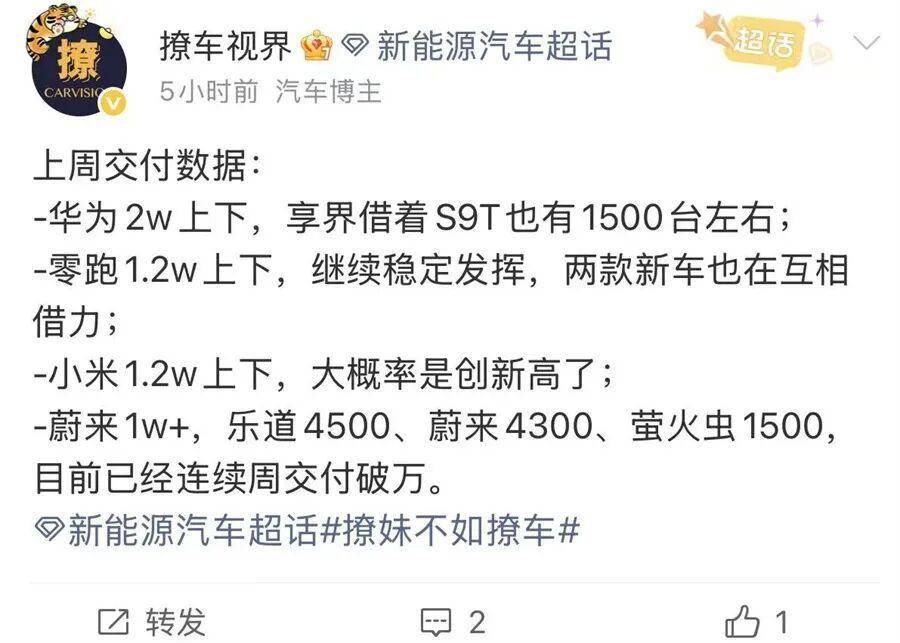 值得一提的是,近期有汽车博主爆料称,小米汽车上周汽车交付量达到1.2w上下,这是创新高的成绩。或许舆论真的有些刺耳,但数据也着实令人艳羡。一旦小米汽车用盈利或交付量等数据打脸众人,我们又当如何?
